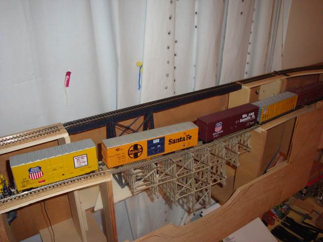 ![]() Bild: Die Lokomotiven 8125 + 8102 auf der Trestlebrücke bei der Anfahrt zum Loop. |