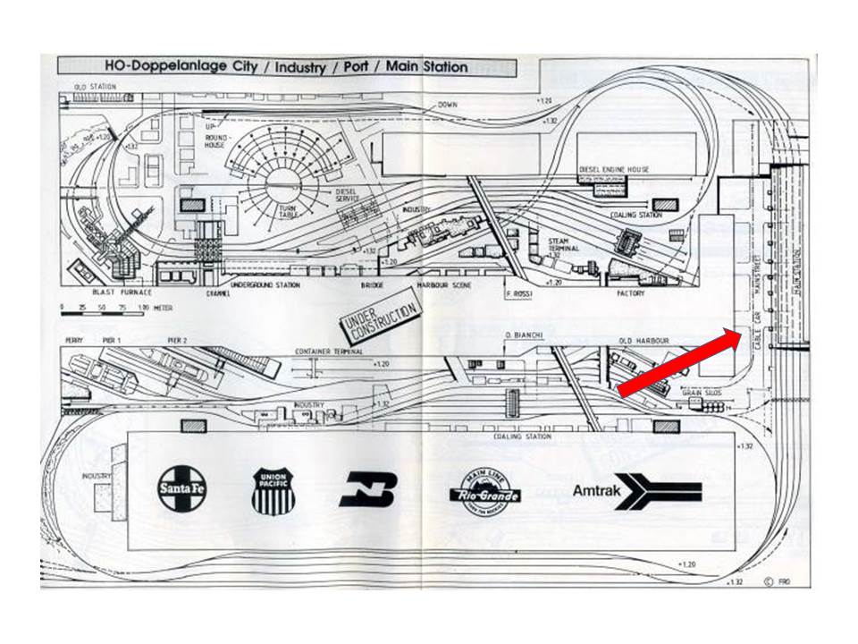 Beinahe verschollen sind die zwei nachfolgenden Fotos aus dem alten Layoutcenter Adliswil (ALCA). Auf unserer H = Doppelanlage, die ich zusammen mit Domenico Bianchi gebaut habe, stand eine "Union Station" mit einer Länge von ca. 2.40 Metern. Natürlich alles von mir in mühsamer Handarbeit gebaut. Das Unding brauchte beinahe ein Jahr und wurde nie ganz fertig. Der Durchgangsbahnhof bestand aus 5 Gleisen und stellte die Verbindung der Doppelanlage auf ihrer oberen Ebene sicher.